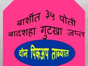सदर पथकाने दोन्ही वाहनाची तपासणी केली असता त्यामध्ये बादशहा गुटखा या प्रतिबंधित अन्न पदार्थाचे एकूण ३५ पोती, किंमत रूपये १६ लाख १२ हजार ८०० रूपये तसेच महिंद्रा पिकअप (वाहन क्रमांक एमएच-१२ एलटी ९८५३) किंमत रूपये पाच लाख व महिंद्रा पिकअप (वाहन क्रमांक एमएच-१३ एएन-३९५५) किंमत रूपये पाच लाख असे एकूण एकत्रित किंमत रूपये २६ लाख १२ हजार ८०० चा मुद्देमाल आढळून आला. सदर प्रकरणी रेणुका पाटील, अन्न सुरक्षा अधिकारी यांनी पुढील कारवाईसाठी बार्शी तालुका पोलीस स्टेशन, बार्शी येथे फिर्याद दाखल करण्याचे कामकाज सुरु केले. उपरोक्त प्रतिबंधित अन्न पदार्थाच्या वाहतुकीसाठी वापरण्यात आलेले वाहन जप्त करुन ताब्यात घेण्यात आले आहे.