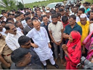 Deputy Chief Minister Ajit Pawar यांनी लांबोटी गावाला भेट दिली. अतिवृष्टी व धरणातून पाण्याचा मोठा विसर्ग झाला आहे. त्यामुळे निर्माण झालेल्या पूरपरिस्थितीची प्रत्यक्ष पाहणी केली.नदीकाठच्या गावांमध्ये मोठ्या प्रमाणावर नुकसान झाल्याचे चित्र आहे. (Promise of urgent help) शासनाकडून तातडीने पंचनामे करून पूरग्रस्तांना मदत दिली जाईल, असे आश्वासन त्यांनी दिले. मुसळधार पावसामुळे आणि धरणातून दोन लाख क्युसेक्स पाण्याचा विसर्ग (Two lakh cusecs of water) झाला आहे. त्यामुळे लांबोटी परिसरात पूरस्थिती निर्माण झाली आहे.