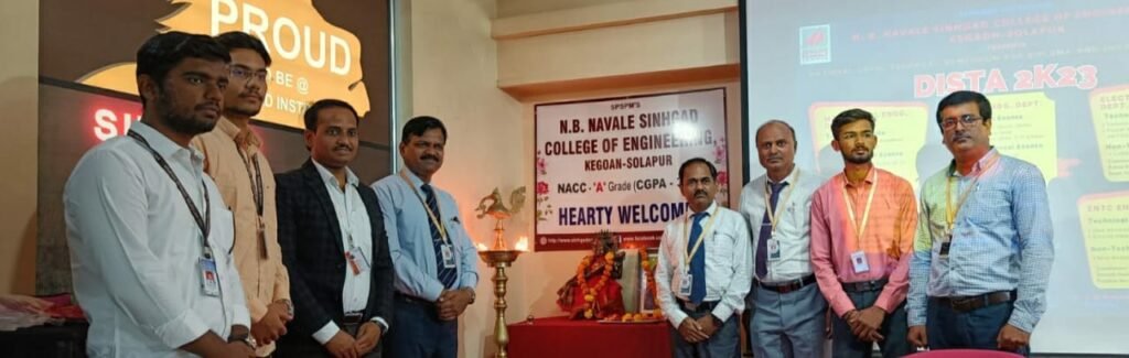 केगांव येथील एन. बी. नवले सिंहगड अभियांत्रिकी महाविद्यालयात ‘डीस्टा 2के23’ नॅशनल लेव्हल टेक्निकल इव्हेंट संपन्न झाला. या कार्यक्रमाचे उद्घाटन प्रमुख पाहुणे डूरॉक्रेट इंजिनीअरिंग सर्व्हिस प्रा. ली. चे जनरल मॅनेजर रवींद्र जगताप आणि सिंहगड महाविद्यालयाचे प्राचार्य डॉ. शंकर नवले यांच्या हस्ते करण्यात आले. यावेळी महाविद्यालयाचे उपप्राचार्य डॉ. रवींद्र व्यवहारे, डॉ. शेखर जगदे यांची प्रमुख उपस्थिती होती.