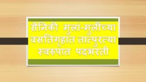 - तरी पात्र ईच्छुक उमेदवारांनी स्वत:ची मुळ कागदपत्रे सोबत आणावीत . सदर पदे भरतीसाठी माजी सैनिकांना प्राधान्य देण्यात येईल , माजी सैनिक उपलब्ध न झाल्यास नागरी जीवनातील उमेदवारांचा विचार केला जाईल . पण निव्वळ तात्पूरत्या स्वरूपात एकत्रित मानधनावर सहायक वसतिगृह अधीक्षक हे पद फक्त माजी सैनिक संवर्गातून भरण्यात येईल. तरी सोलापूर जिल्ह्यातील पात्र व गरजू माजी सैनिक / युध्द विधवा / माजी सैनिक विधवांनी जास्तीत जास्त लाभ घ्यावा असे आवाहन जिल्हा सैनिक कल्याण अधिकारी सोलापूर यांनी केले आहे.