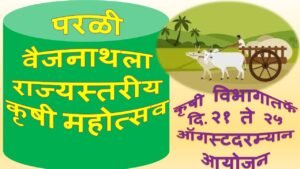 सोलापूर : महाराष्ट्र शासन कृषी विभागामार्फत दि.२१ ते २५ ऑगस्ट २०२४ या कालावधीत बीड जिल्ह्यातील परळी वैजनाथ येथील कृषी उत्पन्न बाजार समिती, कॉटन मार्केट यार्ड, नाथ रोड, परळी वै. येथे पाच दिवसीय परळी वैजीनाथ राज्यस्तरीय कृषी महोत्सव-२०२४ आयोजित करण्यात आले आहे.