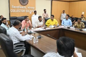 यावेळी आमदार देवेंद्र कोठे, जिल्हाधिकारी कुमार आशिर्वाद, मुख्य कार्यकारी अधिकारी कुलदिप जंगम, महापालिका आयुक्त सचिन ओंबासे, शहर पोलीस आयुक्त एम. राजकुमार, पोलीस अधीक्षक अतुल कुलकर्णी, निवासी उपजिल्हाधिकारी अभिजीत पाटील जिल्हा अधीक्षक कृषी अधिकारी शुक्राचार्य भोसले, प्रांत अधिकारी सदाशिव पडदुणे, सुमित शिंदे, सचिन इथापे, विजया पांगारकर, तंत्र अधिकारी सतीश देशमुख, जिल्हा नियोजन अधिकारी दिलीप पवार, अभियंता खांडेकर, सर्व तहसीलदार, तालुका कृषी अधिकारी उपस्थित होते.