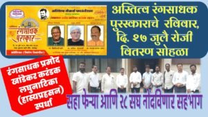 रंगसाधक प्रमोद खांडेकर करंडक लघुनाटिका (हास्यप्रहसन) स्पर्धा; अस्तित्व रंगसाधक पुरस्काराचे रविवार, दि. २७ जुलै रोजी वितरण; अस्तित्व मेकर्स फाऊंडेशनचा उपक्रम