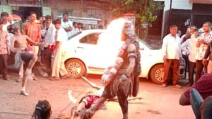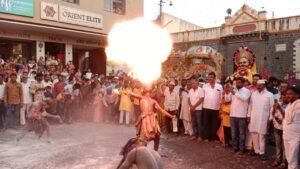 सोलापूर : हलगीच्या तालावर नाचणारे घोडे, दिल्लीहून आलेल्या अघोरी नृत्य पथकाचे सादरीकरण अन् विजयपूर येथील कर्नाटकी ‘गारुडी गोंबे’ ने रंगत आणली. निमित्त होते श्री श्री श्री सद्गुरु बसवारूढ महास्वामीजी मठ ट्रस्ट आयोजित अतिरुद्र स्वाहाकारानिमित्त निघालेल्या शोभायात्रेचे.