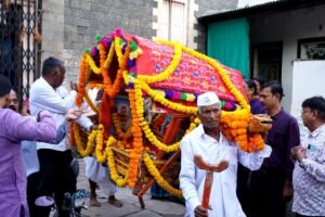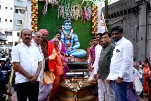 श्री सद्गुरु बसवारूढ महास्वामीजींच्या समाधी सुवर्ण महोत्सवानिमित्त विमानतळा पाठीमागे असलेल्या कस्तुरबा नगरातील श्री सद्गुरु बसवारूढ महास्वामीजी मठात सोमवार, दि. २६ ऑगस्ट टे रविवार १ सप्टेंबर दरम्यान अतिरूद्र स्वाहाकार कार्यक्रमाचे आयोजन करण्यात आले आहे. यानिमित्त रविवारी सायंकाळी शोभायात्रा काढण्यात आली. बाळीवेस येथील श्री मल्लिकार्जुन मंदिरात मठाचे संस्थापक प. पू. सद्गुरु श्री. ब्र. श्री. ईश्वरानंद महास्वामीजी आणि मठाधिपती श्री. ब्र. श्री. शिवपुत्र महास्वामीजी यांच्या हस्ते पूजन करून शोभायात्रेस प्रारंभ झाला. प्रारंभी शोभायात्रेत ठेवण्यात आलेल्या भगवान श्री शंकरांच्या मूर्तीचे पूजन मान्यवरांच्या हस्ते करण्यात आले.