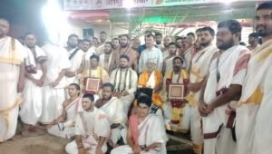 सोलापूर :  धार्मिक अधिष्ठान असलेल्या व्यक्तींमुळे धर्माचा विजय होतो, असे प्रतिपादन महाराष्ट्र राज्य पोलीस तक्रार प्राधिकरणाचे न्यायिक सदस्य उमाकांत मिटकर यांनी केले. श्री श्री श्री बसवारूढ महास्वामीजी मठ ट्रस्टतर्फे महाराष्ट्र राज्य पोलीस तक्रार प्राधिकरणाचे न्यायिक सदस्य उमाकांत मिटकर आणि जिल्हा सरकारी वकील ॲड. प्रदीपसिंह राजपूत यांचा सन्मान करण्यात आला. मठातर्फे सुरू असलेल्या अतिरुद्र स्वाहाकाराचे दर्शन मिटकर आणि ॲड. राजपूत यांनी मंगळवारी घेतले. यावेळी रुद्रयंत्र, नेपाळहून आलेली रुद्राक्षाची माळ, शाल आणि पुष्पहार घालून दोघांचा मठाधिपती श्री. ब्र. श्री. शिवपुत्र महास्वामीजी यांच्या हस्ते सन्मान करण्यात आला. यावेळी व्यासपीठावर स्वागताध्यक्ष विशाल बन्सल, मुंबई येथील उद्योजक आणि स्वागत उपाध्यक्ष सतीश कुलकर्णी, कृष्णात पाटील उपस्थित होते.