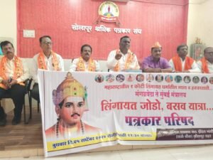 सोलापूर : राष्ट्रीय लिंगायत संघाच्यावतीने लिंगायत समाजाच्या न्याय व हक्काच्या विविध मागण्यांसाठी येत्या ऑक्टोबरमध्ये महात्मा बसवेश्वरांची कर्मभूमी मंगळवेढा ते मुंबई लिंगायत जोडो बसव यात्रेचे आयोजन करण्यात आले आहे, अशी माहिती राष्ट्रीय लिंगायत संघाचे संस्थापक अध्यक्ष प्रदीप वाले आणि महाराष्ट्राचे राज्य समन्वयक विजयकुमार हत्तुरे यांनी पत्रकार परिषदेत दिली.