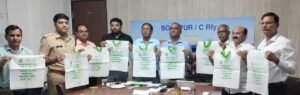 सोलापूर : रेल्वे बोर्डाच्या स्वच्छता पखवाडा उपक्रमांतर्गत, सोलापूर विभागाच्यावतीने   “नो सिंगल यूज प्लास्टिक” या विशेष मोहीम राबविण्यात येत आहे. या मोहिमेचा शुभारंभ विभागीय रेल्वे व्यवस्थापक  नीरज कुमार दोहरे, अपर विभागीय रेल्वे व्यवस्थापक   अंशुमाली कुमार यांच्या उपस्थितीत रेल्वे कार्यालयात करण्यात आला. यावेळी जनजागृतीचा एक भाग म्हणून कापडी पिशव्या वाटण्यात आल्या. त्यावर पर्यावरण विषयक संदेश छापण्यात आले होते.