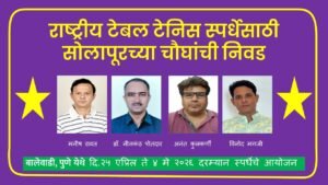सोलापूर : बालेवाडी, पुणे येथे होणाऱ्या राष्ट्रीय टेबल टेनिस स्पर्धेसाठी सोलापूरच्या चौघांची महाराष्ट्र संघात निवड झाली आहे. या संघामध्ये 55 वर्ष वयोगटात डॉ. नीलकंठ पोतदार, ५० वर्षे वयोगटामध्ये मनीष रावत, ४५ वर्ष वयोगटामध्ये अनंत कुलकर्णी यांची तर ४० वर्षे वयोगटामध्ये विनोद मगजी यांची निवड झाली आहे. या स्पर्धा दि. २५ एप्रिल ते ४ मे २०२६ दरम्यान होणार आहेत.