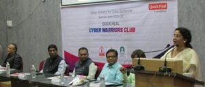 - आजच्या डिजीटल युगात समाजामध्ये सायबर सुरक्षेविषयी जागरूकता निर्माण करणे ही काळाची गरज आहे. त्यासाठी विद्यापीठातील सायबर वॉरीयर्स प्रयत्न करतील असे कुलगुरू प्रा.महानवर यांनी आपल्या भाषणात म्हणाले. या उपक्रमाव्दारे सायबर वॉरीयर्समध्ये व्यक्तीमत्वाचा विकास व संभाषण कौशल्यमध्ये सुधारणा होऊ शकते, असे मत क्वीक हिल फाऊडेंशनचे अजय शिर्के यांनी मांडले. काटकर यांनी क्विक हिल या अँटी व्हायरस कंपनीची माहिती दिली. कार्यक्रमाच्या सुरवातीस संकुलाचे संचालक प्रा. व्ही.बी. घुटे यांनी प्रास्ताविक व स्वागत केले.