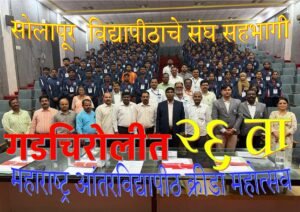 सोलापूर : राज्यपाल कार्यालय आयोजित २६ वा महाराष्ट्र राज्य आंतरविद्यापीठ, क्रीडा महोत्सव २०२४ स्पर्धा दि.१७ ते २२ फेब्रुवारी २०२५ या कालावधीत गोंडवाना विद्यापीठ, गडचिरोली यांनी त्यांच्या परिक्षेत्रातत असलेले चंद्रपुर व बल्लारपूर येथे आयोजित केलेल्या आहेत. सदर स्पर्धेत मुले व मुलींच्या ॲथलेटिक्स,बास्केटबॉल,व्हॉलीबॉल,कबड्डी, खो-खो,बॅडमिंटन, टेबल-टेनिस, चेस (बुध्दिबळ) खेळाचा समावेश आहे.
